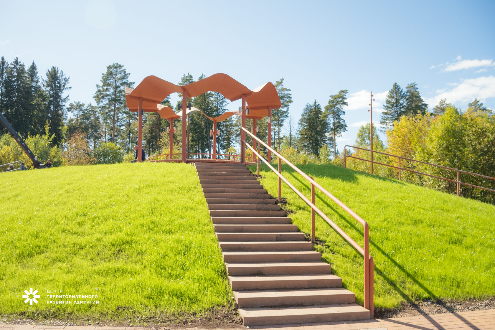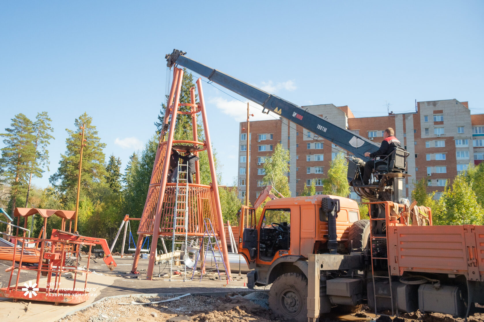 В Молодежном парке Сарапула уже можно увидеть очертания новой детской площадки. Кроме игрового оборудования здесь скоро появятся и удобные места отдыха для взрослых — скамейки, качели, навесы от солнца. Главное — родители и дети смогут проводить время вместе, оставаясь на виду друг у друга.