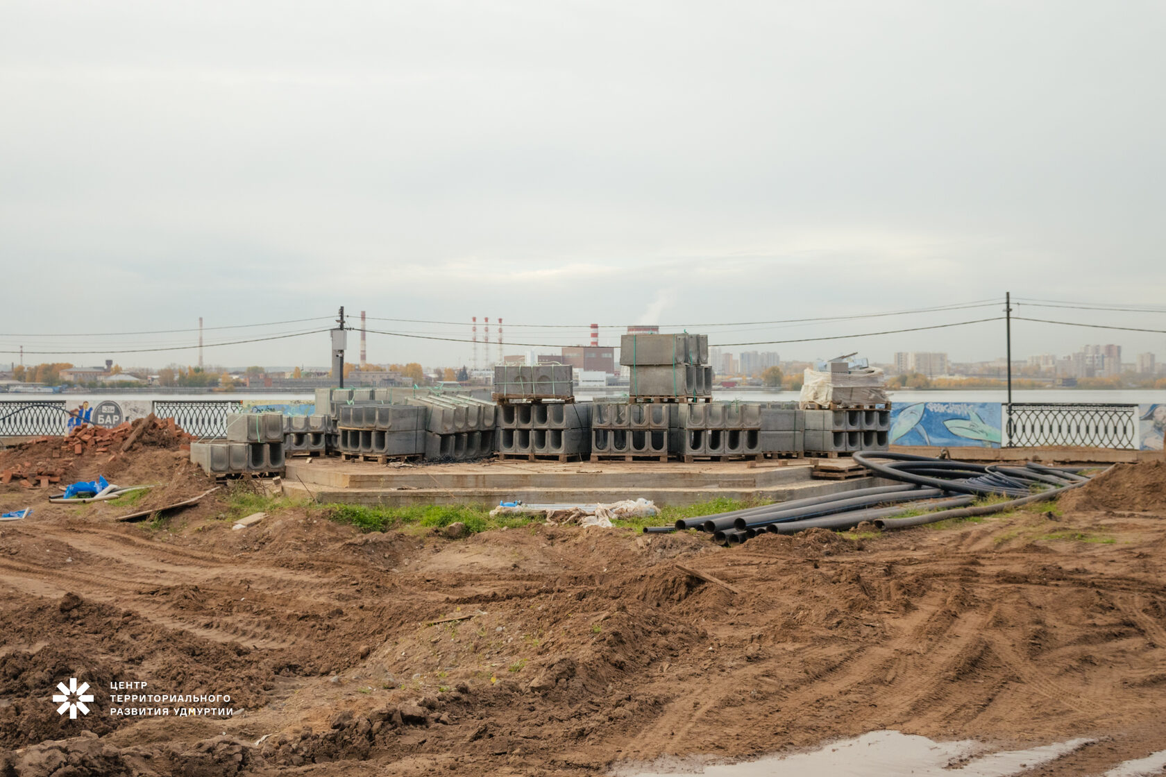 Работы у акватории Ижевского пруда продолжаются, и с каждым днём всё больше виден облик будущего пространства.